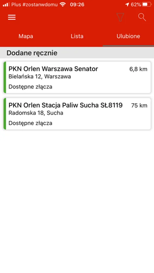 Funkcje aplikacji Orlen Charge: