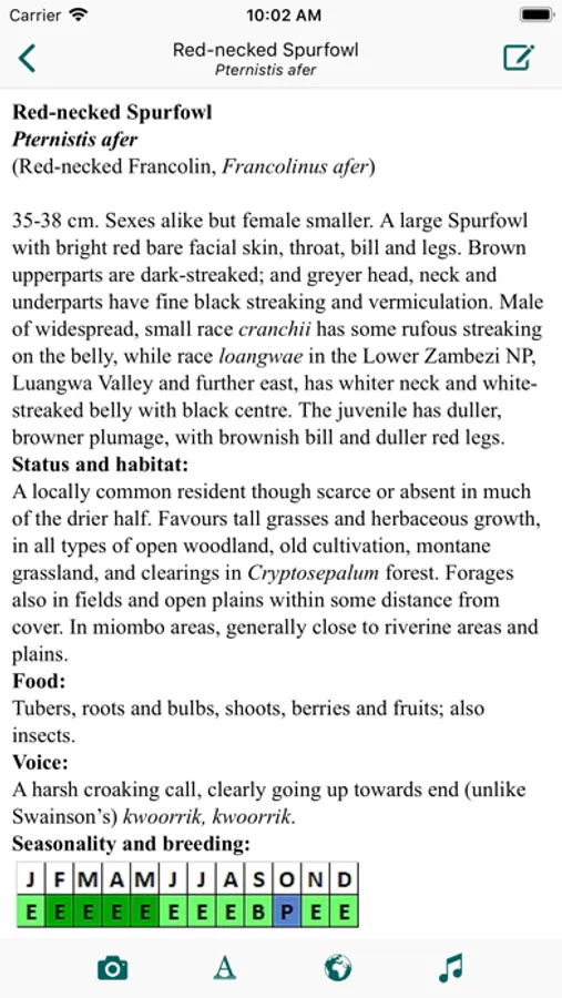 The Birds of Zambia app is an up-to-date identification guide to all recorded birds of the country created by Derek Solomon, Frank Willems and Rory McDougall. This app has many features that will enhance your birding experience.