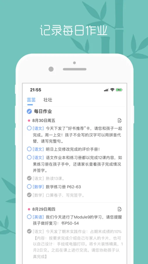 茁茁课程表是针对中小学生及家长的一款课程表App,主要功能有: