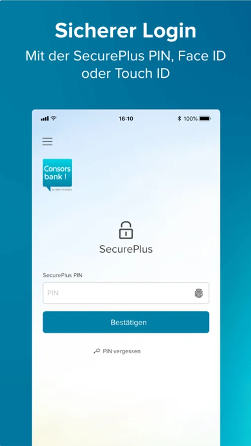 • Zusätzlich zur sicheren Anmeldung mit der SecurePlus PIN können Sie die Touch ID oder Face ID aktivieren.
