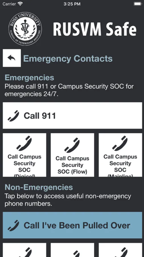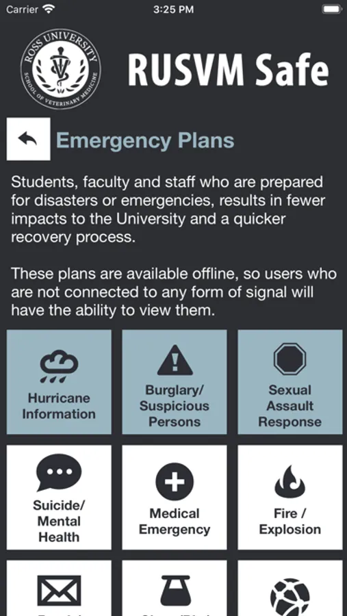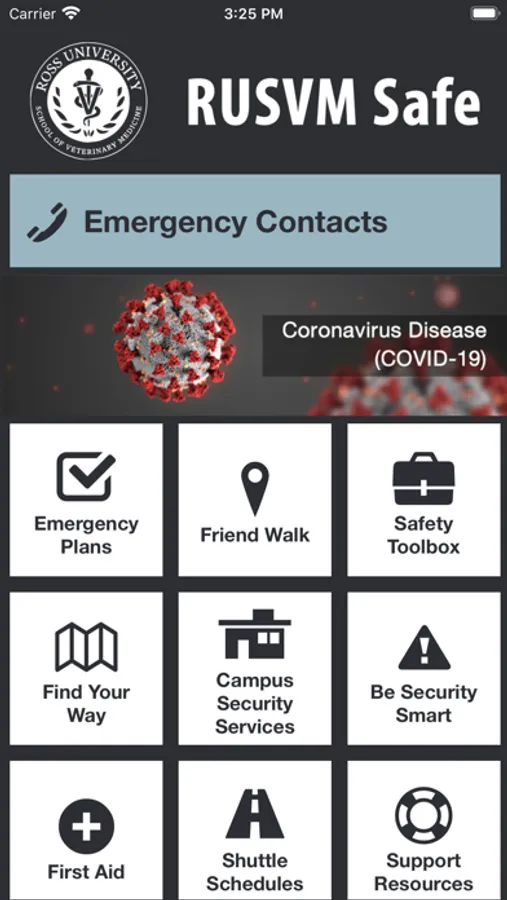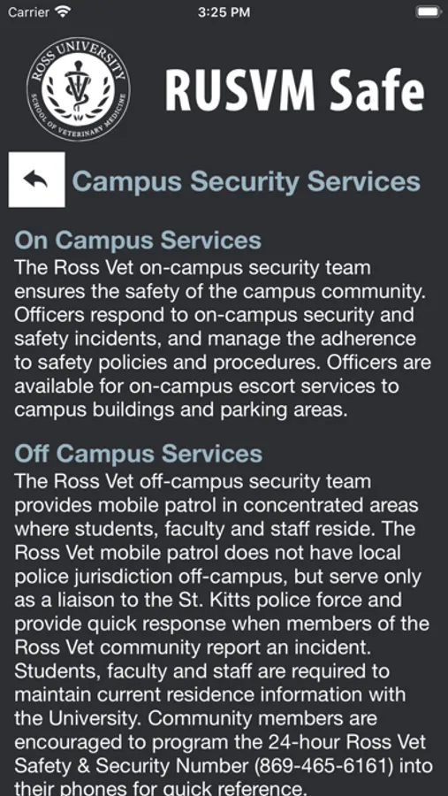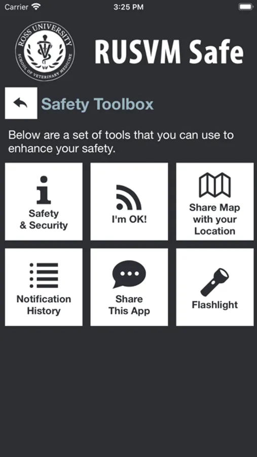 - Safety Notifications: Receive instant notifications and instructions from Ross University School of Veterinary Medicine safety when on-campus emergencies occur.