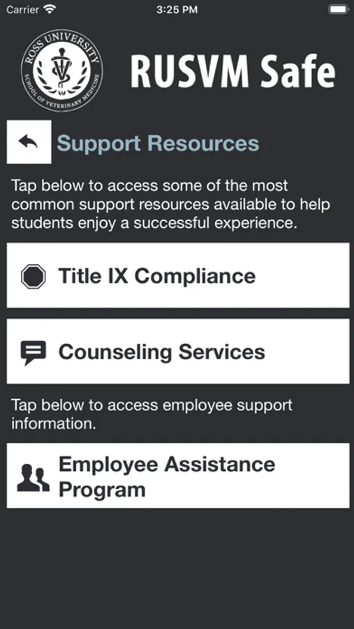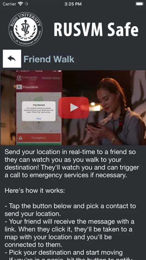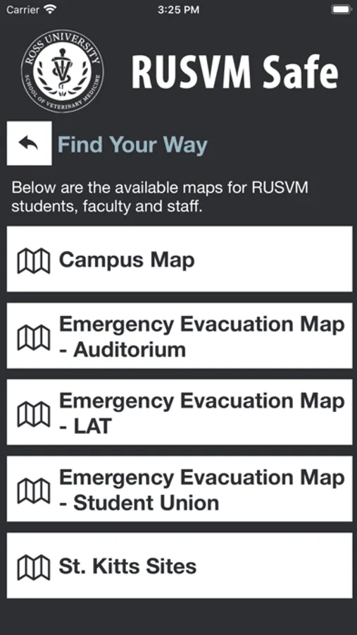 RUSVM Safe is the official safety app of Ross University School of Veterinary Medicine. It is the only app that integrates with Ross University School of Veterinary Medicine's safety and security systems. Campus Security SOC has worked to develop a unique app that provides students, faculty and staff with added safety on the Ross University School of Veterinary Medicine campus. The app will send you important safety alerts and provide instant access to campus safety resources.