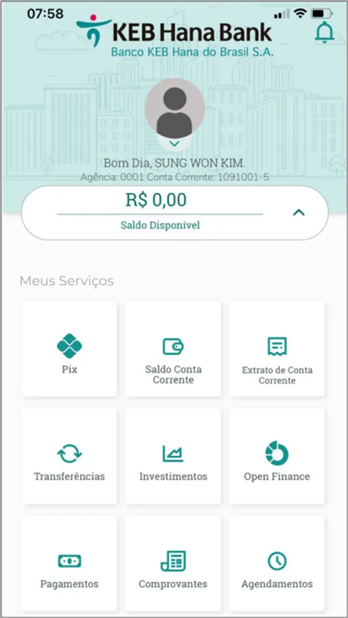 Com o aplicativo do Banco KEB Hana do Brasil, você tem acesso a sua conta.