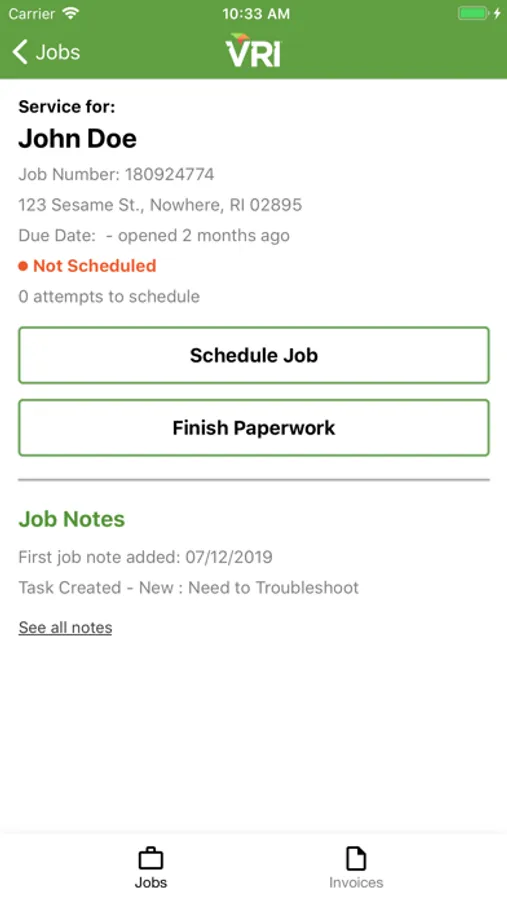 VRI HSR App features include the ability to schedule visits with clients, manage associated paperwork, generate invoices for completed work, and complete installations.