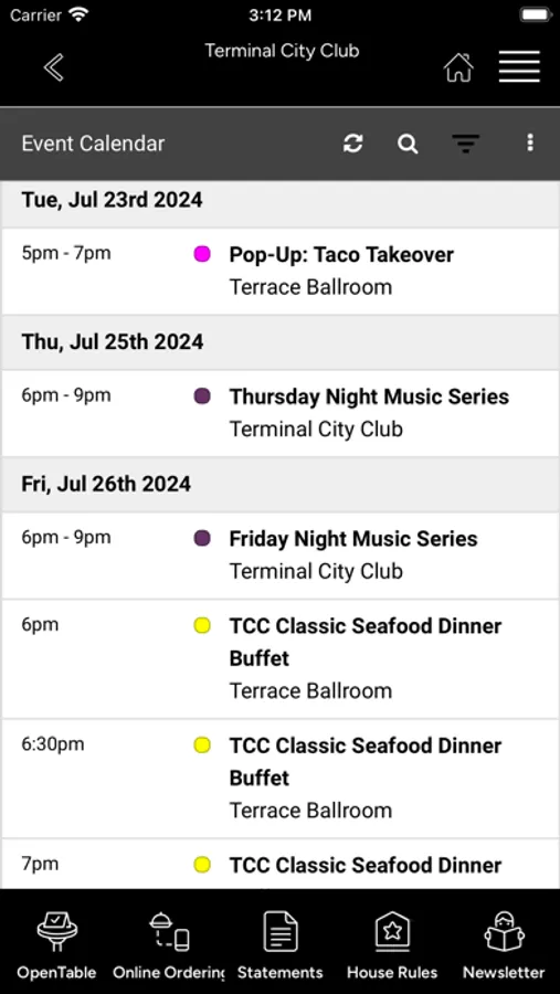 Streamline your Club experience with the TCC app. Browse the Club calendar, register for events, make restaurant reservations, access exclusive member benefits, view your statement, check your food minimum, and more!