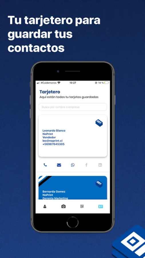 Ya no necesitarás cargar con montones de tarjetas físicas. Con NoPrint será todo guardado en tu propio tarjetero digital.
