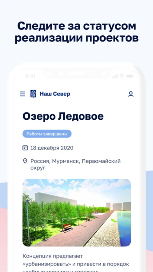 Приложение "Наш Север" – это сервис совместного управления, который позволяет жителям Мурманской области, не тратя времени на заполнение бумажных документов и длительный поиск инстанций, взаимодействовать с властью и влиять на развитие родного города и региона.
