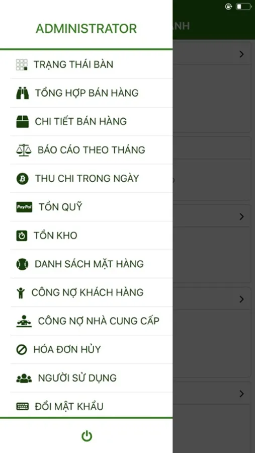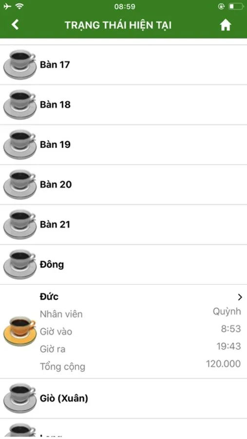 - Trạng thái bàn/khu vực có khách không có khách