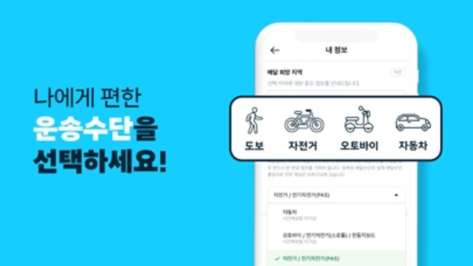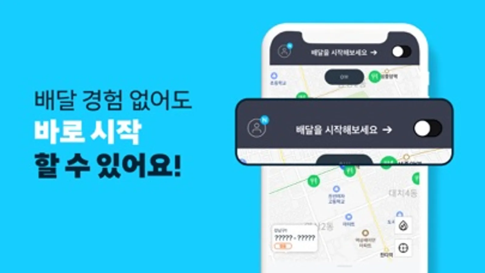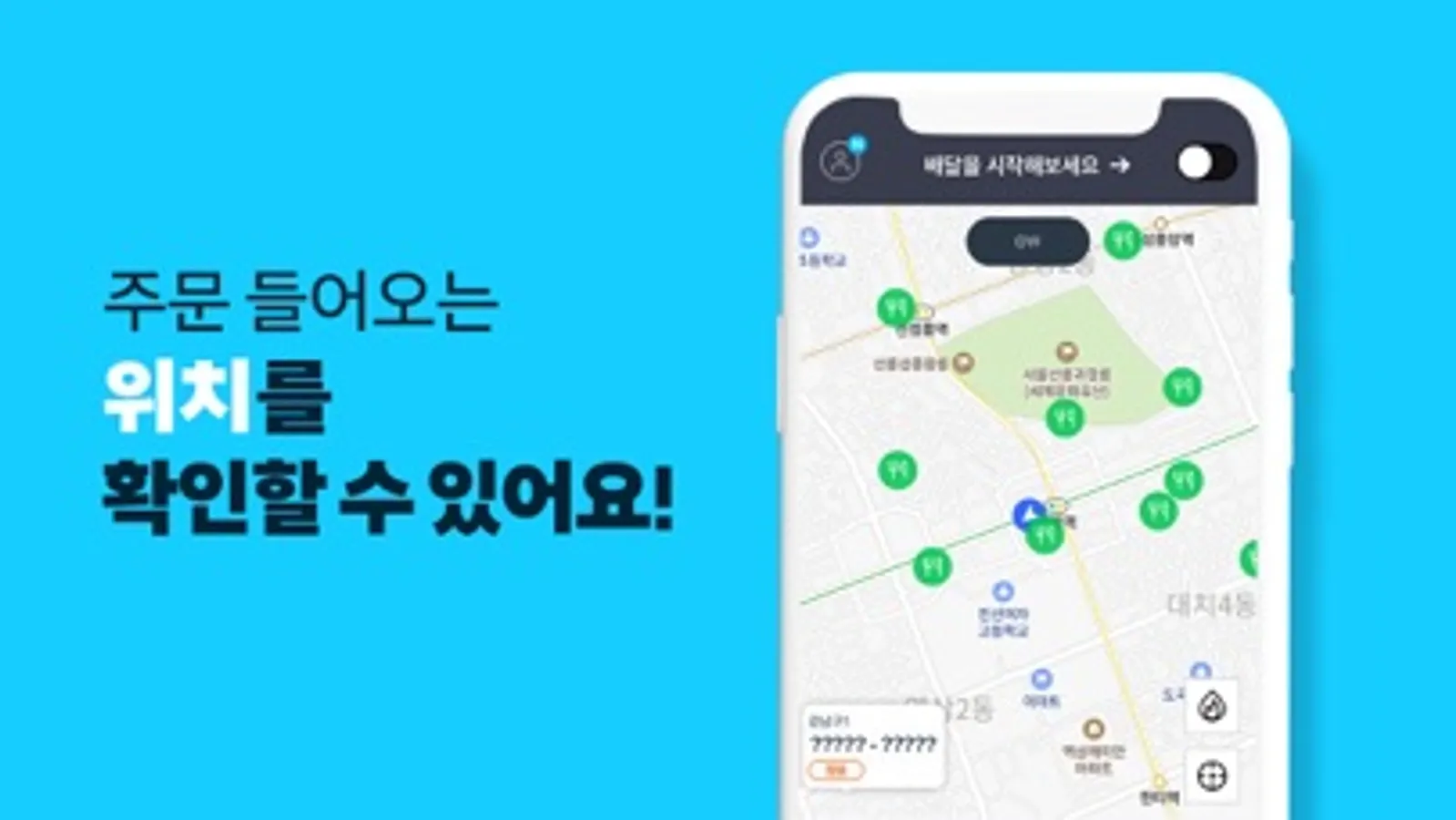 앱에서 등록하고 바로 배달을 시작할 수 있습니다.