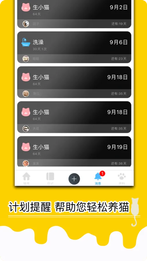 3猫孕生活提供、从小猫出生、记录体重、喂奶次数、体温、追踪小猫的装态、每天系统会提供小猫身体变化重要事情提醒、你也可以全天后,记录小猫每天照片与日记、方便让你知道每日要完成事情。