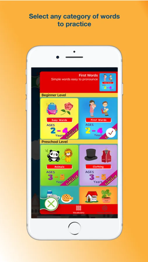 This app offers English vocabulary practice for toddlers and preschoolers in a playful way. It consists of two puzzle solving games and two spelling games that serve as a means to learn a variety of words suitable for toddlers and preschoolers.