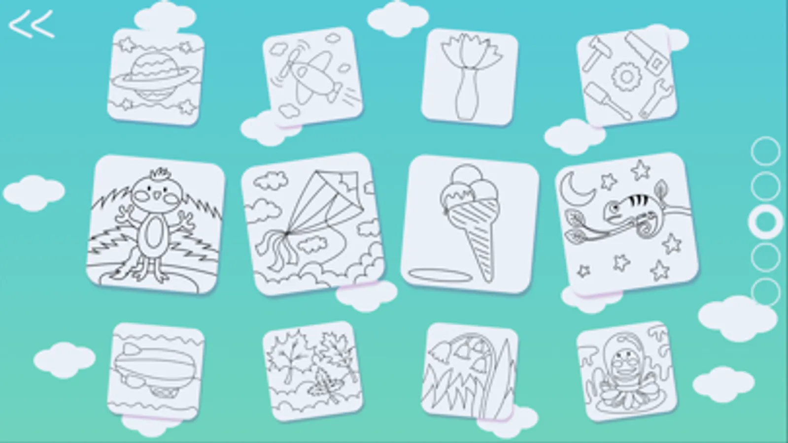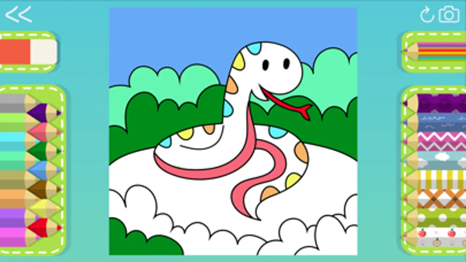 Choose a coloring tool, tap and swipe on the screen to fill colors in lines