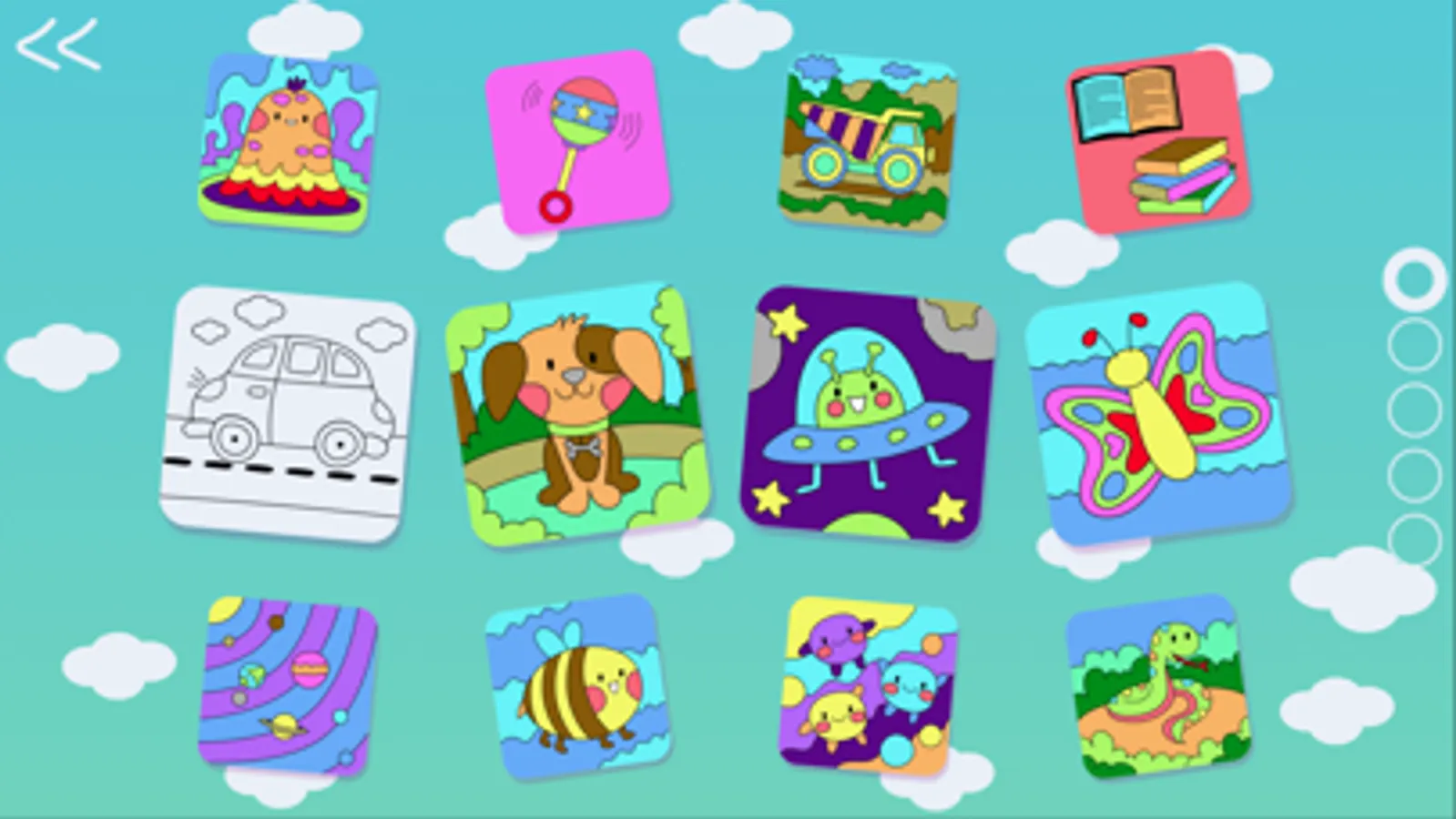 Choose a category that you like, pick a drawing and enter the main coloring screen. You can find cool sketches of a butterfly, a flower, a car, happy animals and many other objects to colorize. Help your toddlers in identifying objects while they color. The app is also useful for toddlers who have a hard time in staying within the lines as the app helps with staying within the boundaries.