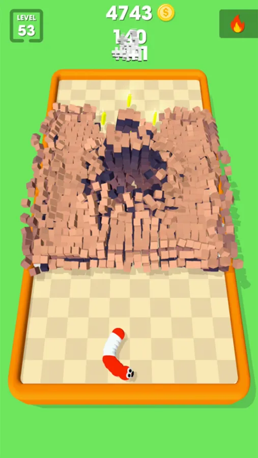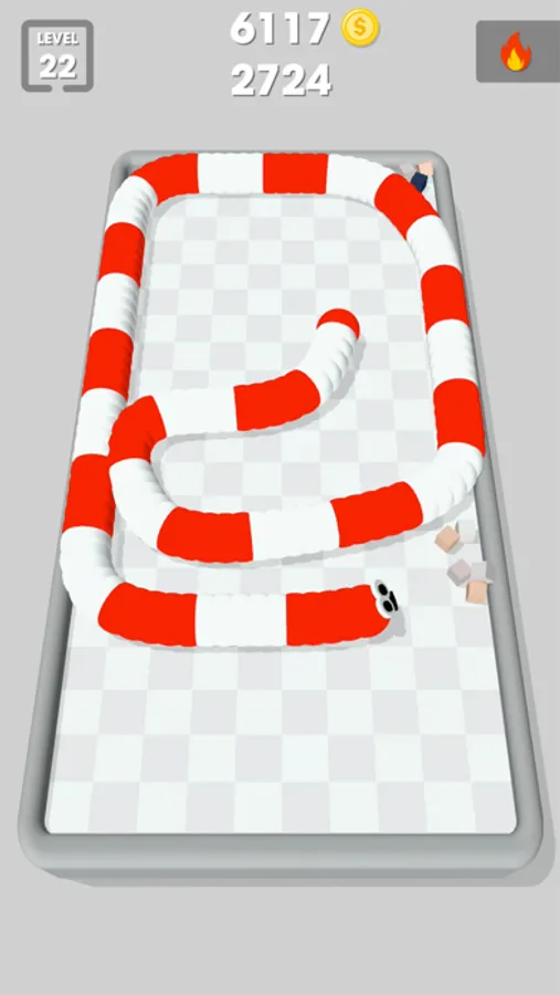 Clear the level by slither the snake surrounding the cubes. Avoid bomb, hole and break all the cubes.