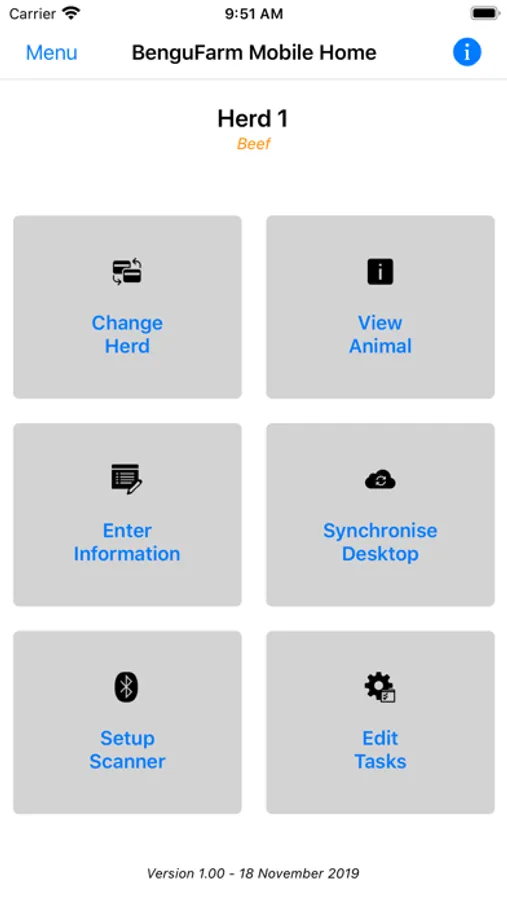 BenguFarm-MOBILE for iOS is a mobile application installed independently of BenguFarm on a iPhone or iPad. BenguFarm-MOBILE is to function side-by-side with BEEF/SHEEP & GOATS module and is used to lookup animal data in the field as well as to capture new animal data. BenguFarm-MOBILE can be used for more than one herd (e.g. stud and commercial), whether the herds are on the same or different databases.