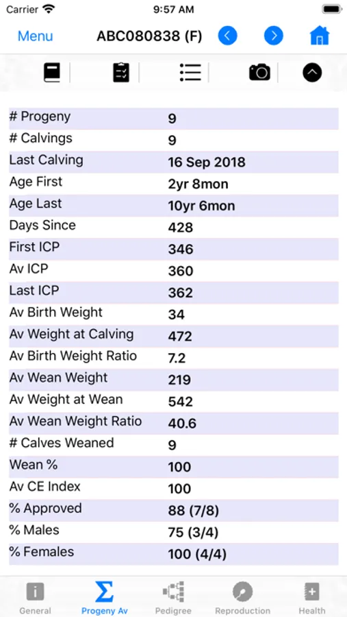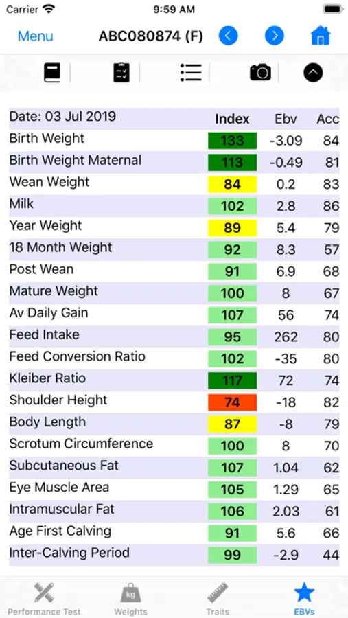 Data on a user's BenguFarm can be sent from his on his PC/laptop to BenguFarm-MOBILE on his smartphone or tablet. This data can then be viewed and, if needed, edited in the app on the smartphone or tablet. Data such as general animal information, reproduction data, weights, performance test data, traits, breeding values, performance of progeny, pedigree and health data can be viewed.