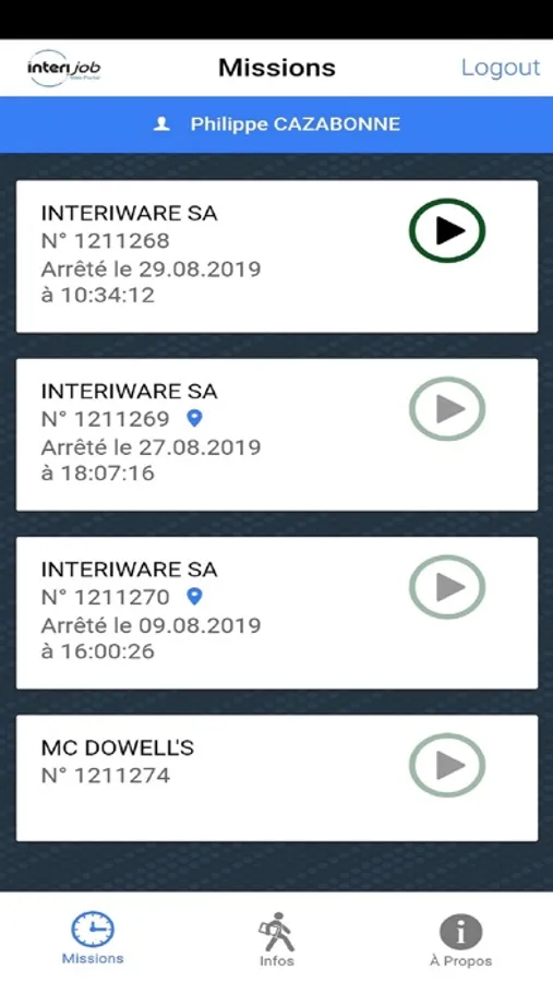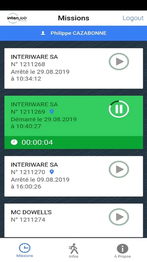 Cette application permet à tout employé de société de service utilisant Interijob de déclarer ses heures de prise de poste / de sortie de poste.