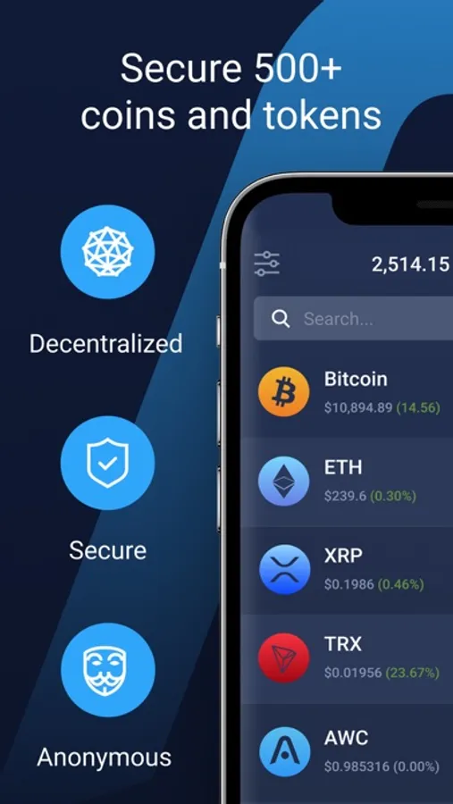 Atomic Wallet is a universal, fully decentralized, multi-currency, and convenient app with a simple interface that supports over 300 cryptocurrencies. It’s designed to be the best option if you’re looking for Bitcoin, Ethereum, Ripple, Litecoin, EOS, Tron wallet. Moreover, Atomic works perfectly for any cryptocurrencies listed in the app. Secure and manage crypto right in your hand!