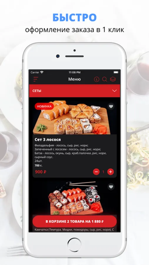 удобная корзина и быстрое оформление заказа,