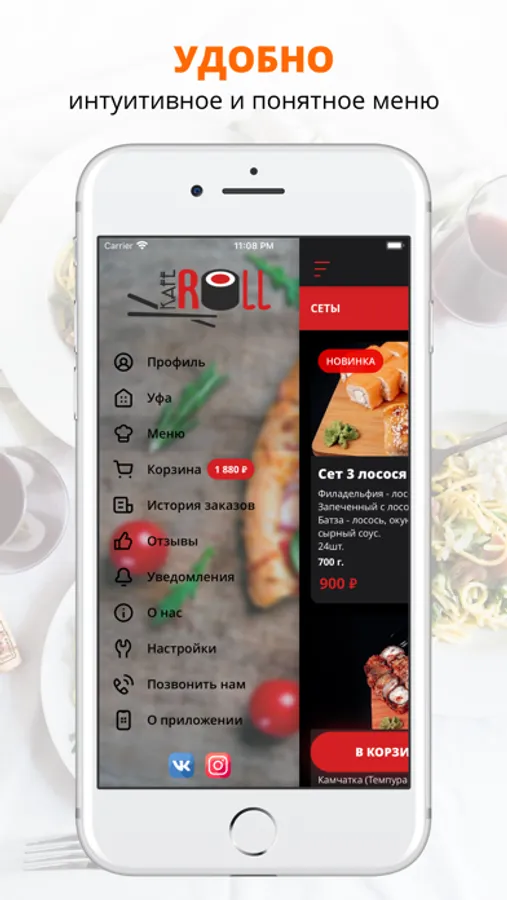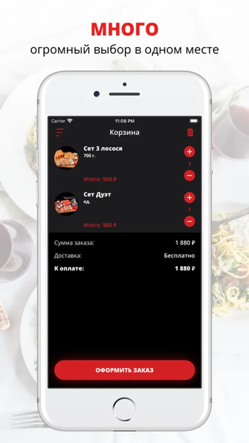 Скачивайте наше приложение, оформляйте заказ и наслаждайтесь любимой едой, где бы Вы ни были! Приятного аппетита!