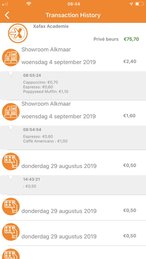 The app displays all transactions and clicking one will provide more detailed information, such as a description of your purchase and any loyalty points you have received.