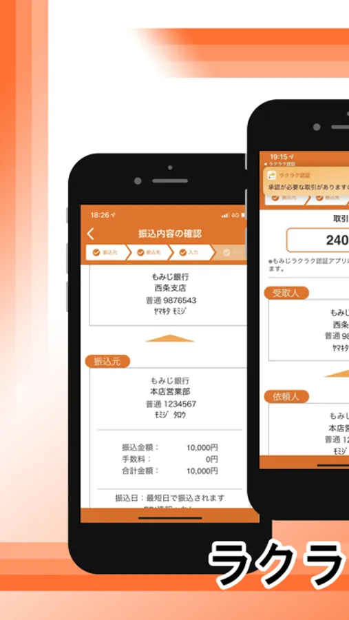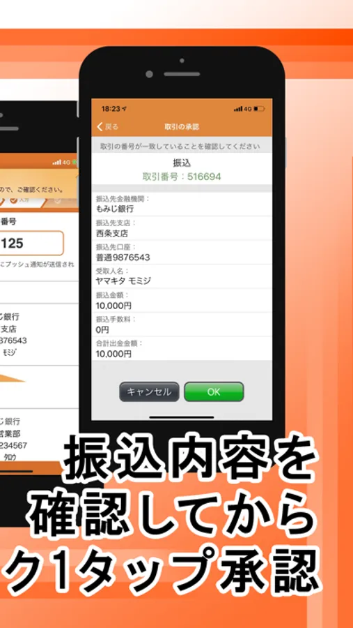ポータルアプリから行った振込などの取引を、本アプリで確認・認証することで二要素での認証となり、取引の安全性が高まります。