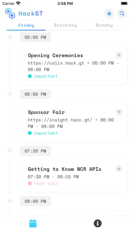 View our events, personalize your schedule, and quickly access important information all in one place. With all the events HexLabs has to offer, take advantage of them all with a clear view of what's happening now, up next, and additional information.