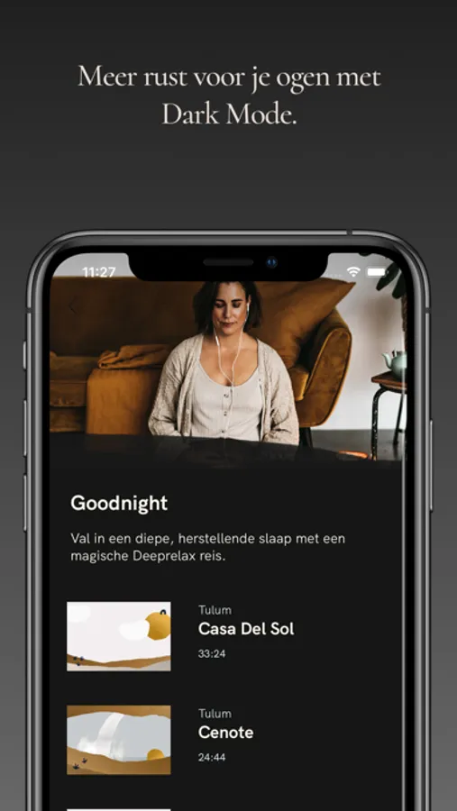 Of je nu beginner of gevorderd bent, met Deeprelax is het mogelijk om diep te ontspannen waar en wanneer je maar wilt. In de vorm van een kort ochtendritueel, een powernap tussendoor of juist tijdens een heerlijke, extra lange avondsessie. Compleet met een offline functie. Elke sessie heeft een uniek thema, variërend van 14 tot 50 minuten, ontworpen en ingesproken door Eliane Bernhard.