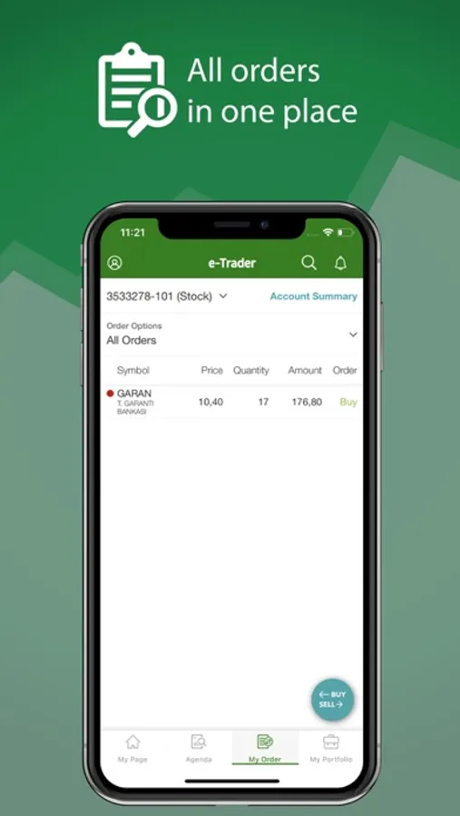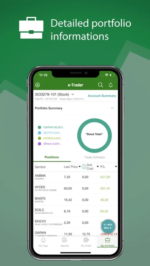 You can access your accounts from My Portfolio via logging from Garanti BBVA Internet Banking, you can watch your portfolio and give buy and sell orders.