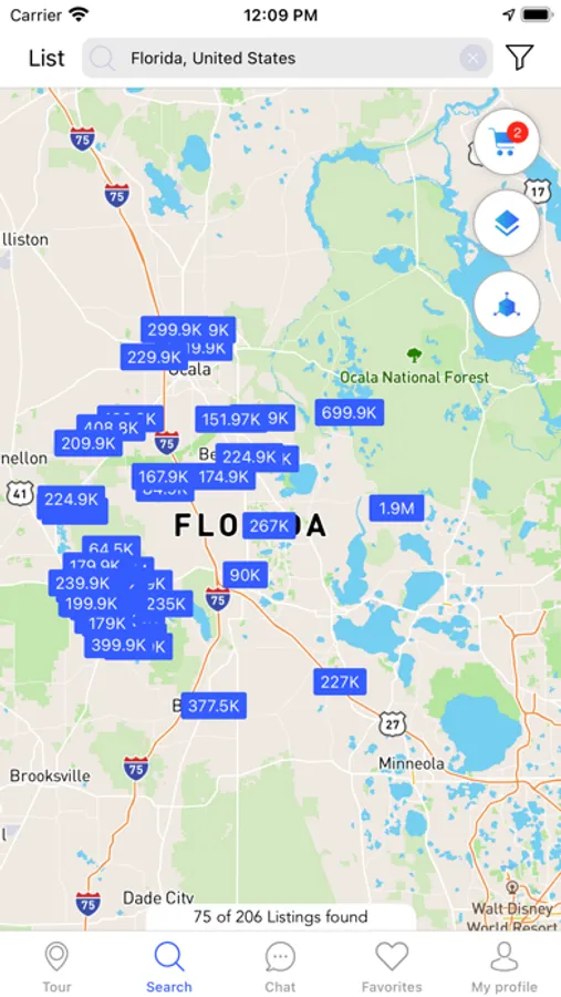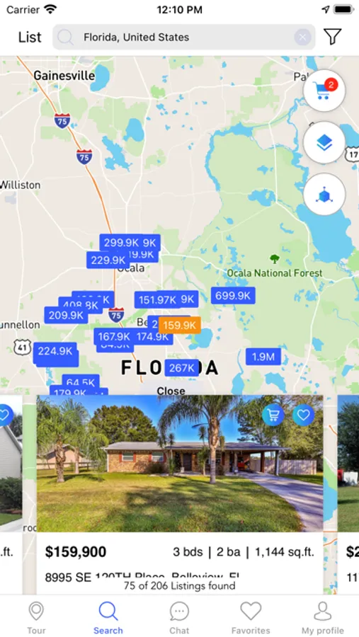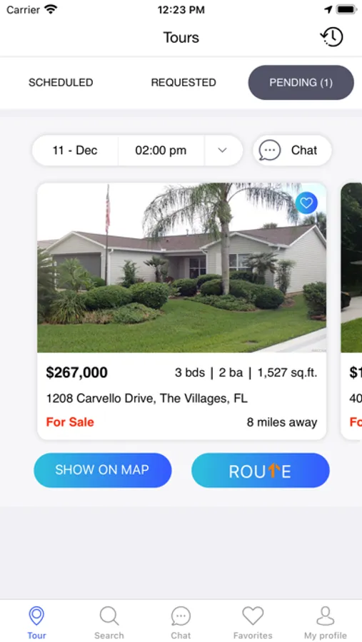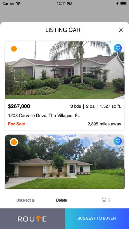 Listing Cart: Allows you to search and save the homes you’d like to add to your real estate route and to tour.