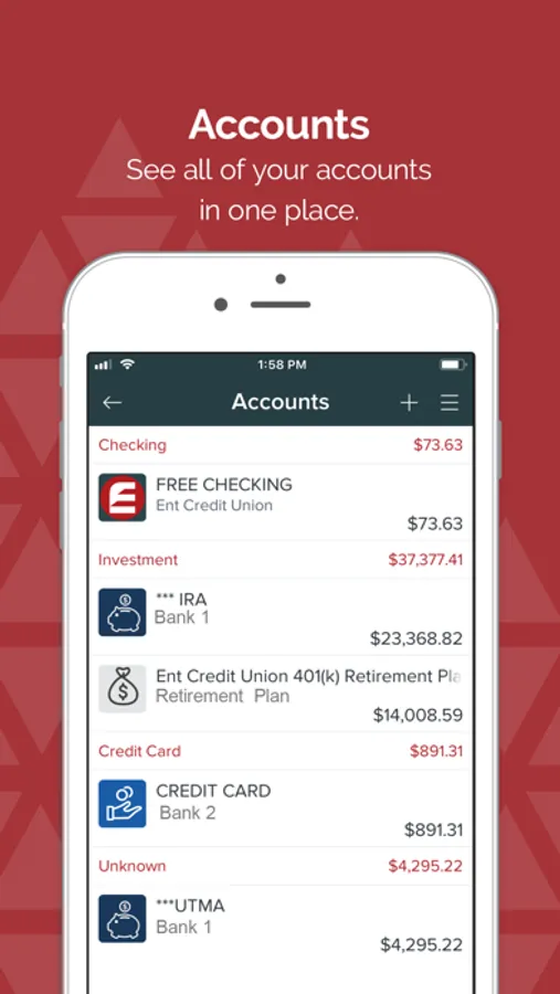 This app allows non-members to engage with financial tools that our members automatically access by logging into online banking. If you like what you see, you can become a member at Ent.com/Join and quickly sync your data to the full-featured app.