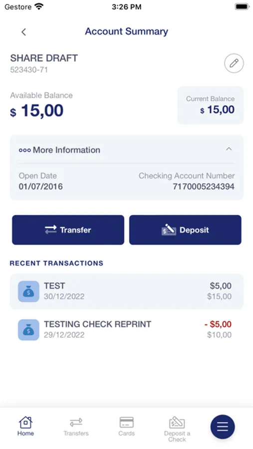 • Transfer Funds between accounts