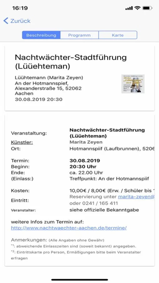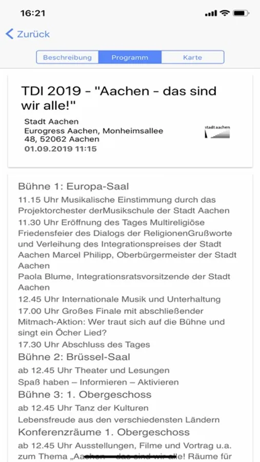- eine Veranstaltungsübersicht listet alle Termine nach Datum auf
