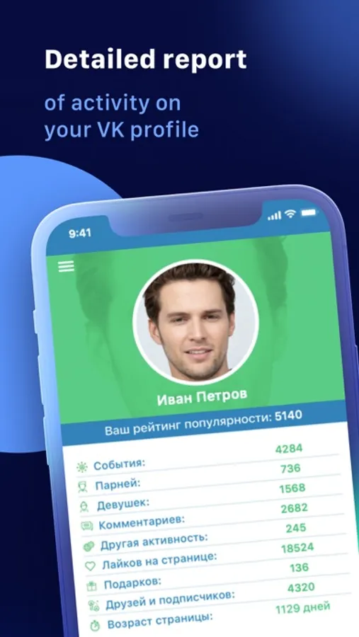 With this application, you can analyze the statistics and analytics of your Vkontakte profile. All information provided in few simple and useful tabs. You can use a picture search on the map to find new interesting people around you. Check your friend's activity, post popularity, and much more!