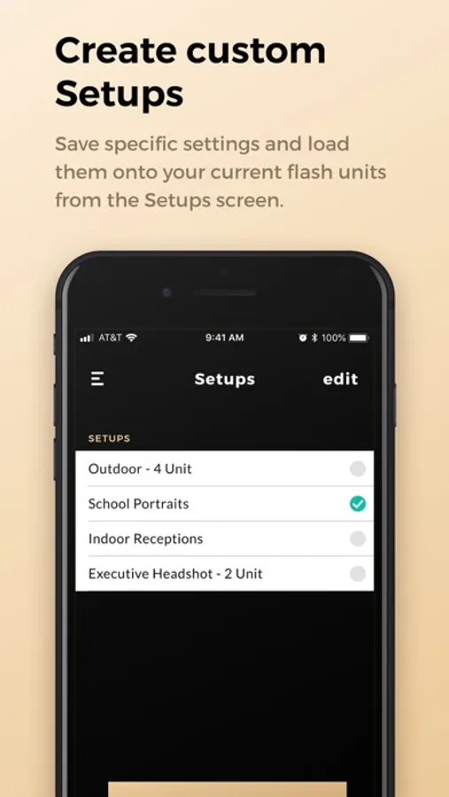 Use the HUB remote to find Paul C. Buff, Inc. flash units in your setup. Once added to your setup, you can control the power outputs of both the flash and modeling lamp, turn them on/off directly from your phone, and save your setups for future use.