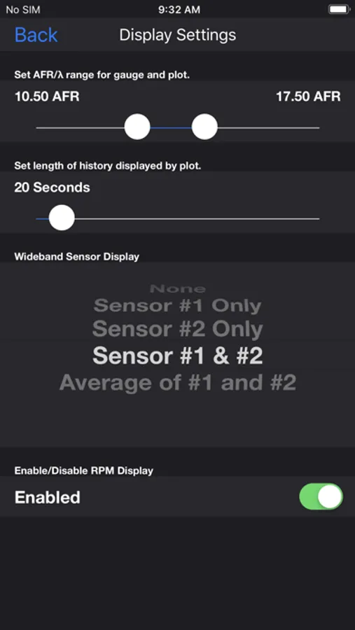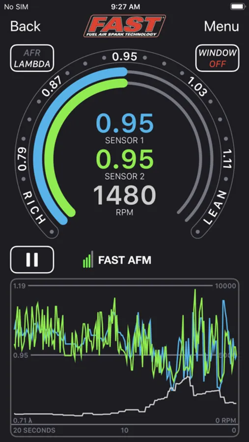 • Pause and review up to 120 seconds of previous air/fuel ratios and rpm