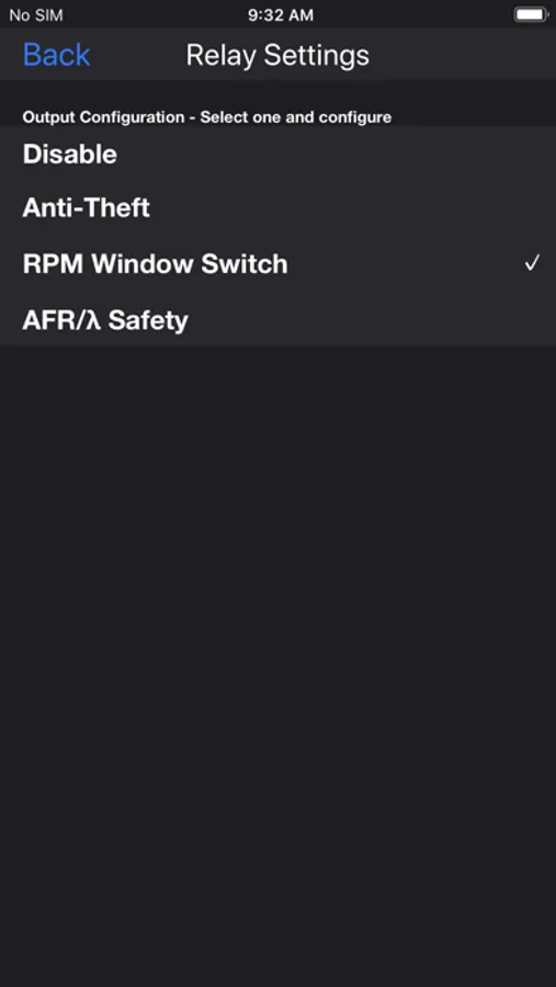 • A selectable relay output can be used as an RPM window switch, lean A/F safety cut-off or vehicle immobilizing anti-theft feature