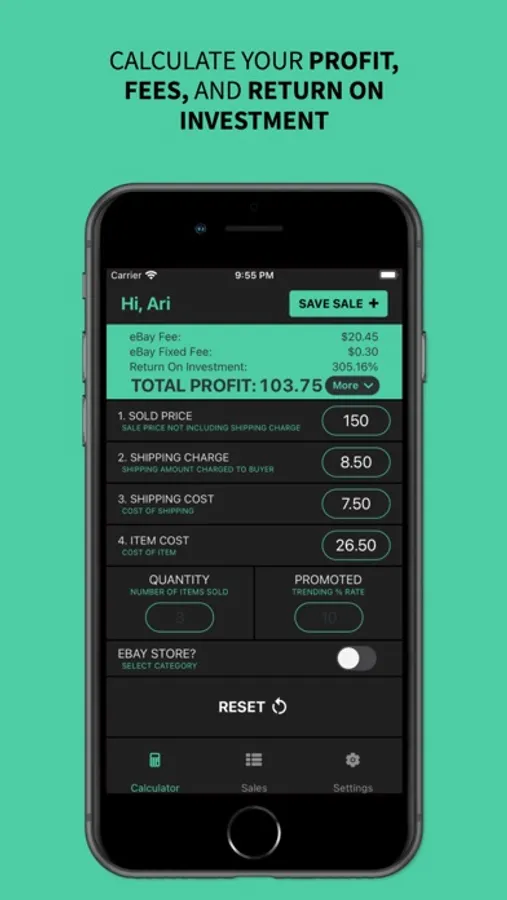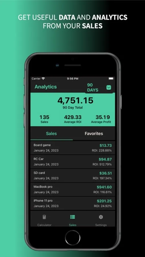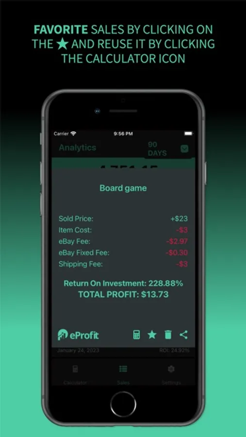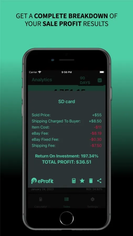 In addition to providing the total dollar amount you'll be earning after all the fees and charges that come with selling anything on eBay eProfit also provides return on investment (ROI) data to help with sourcing products to sell on eBay.