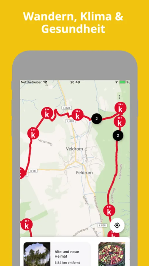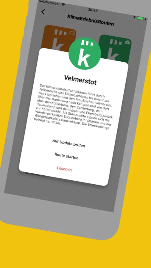 Die jeweilige KlimaRoute kann in der App heruntergeladen und mit Updates versorgt werden.