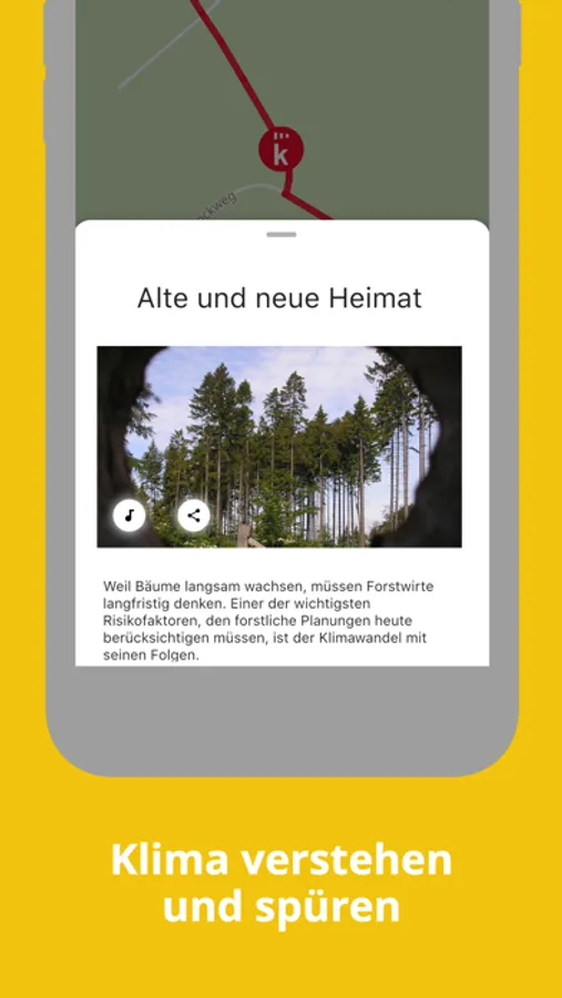Mit Hilfe der App KlimaErlebnisWandern ist man Dank GPS nicht nur immer auf dem richten Weg, man erhält auch an den Stationen der KlimaRouten interessante Informationen in from von Text, Bild und Podcast. Insbesondere die Hörgeschichten vermitteln einen Spannenden Eindruck in die Welt des Klimas.