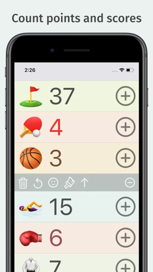 No matter if you record your Golf strokes, try to keep baseball statistics or simply want to count your sit-ups — sports is often about counting and all can be recorded quickly and easily in UpMoji.