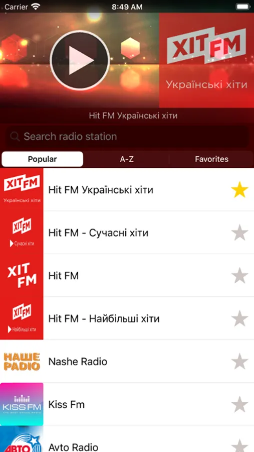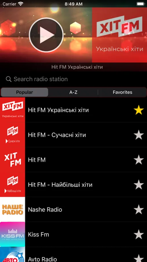 Знайдіть свою улюблену радіостанцію, додайте її в список обраних та слухайте одним натисканням кнопки.
