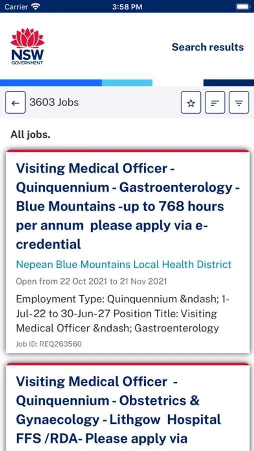 1. Search for jobs by Keyword search, location, salary range, specific NSW Agencies and much more
