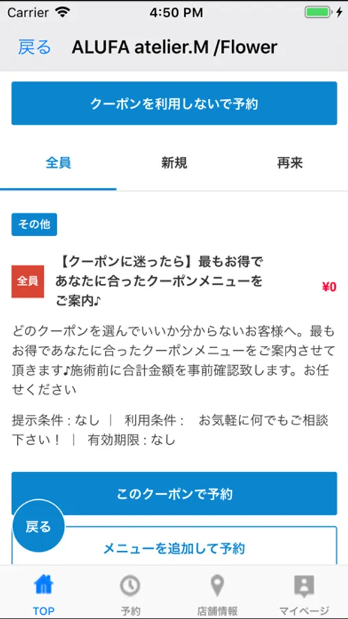 お得なクーポンが配信されます。ネット予約時にクーポン利用での予約も可能なので来店時もスムーズに施術頂けます。