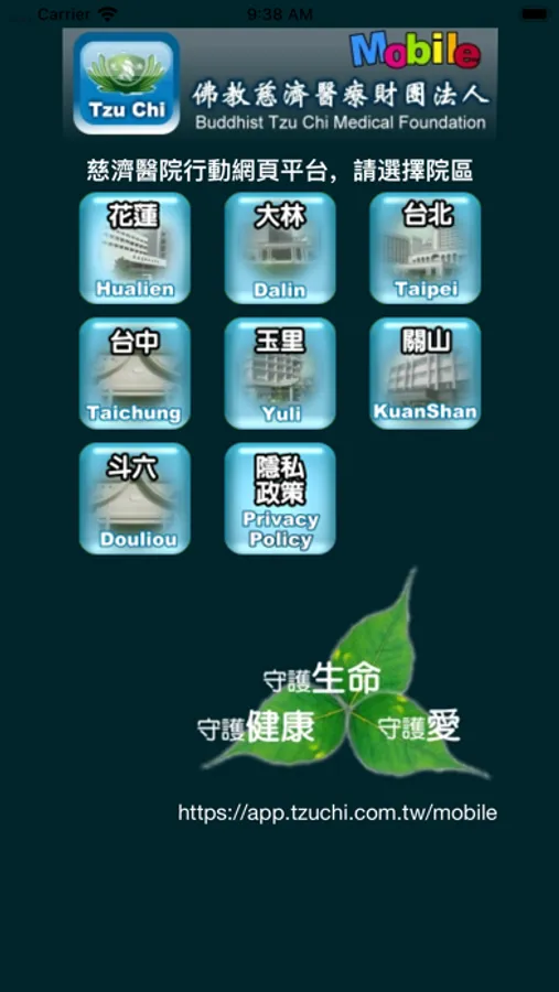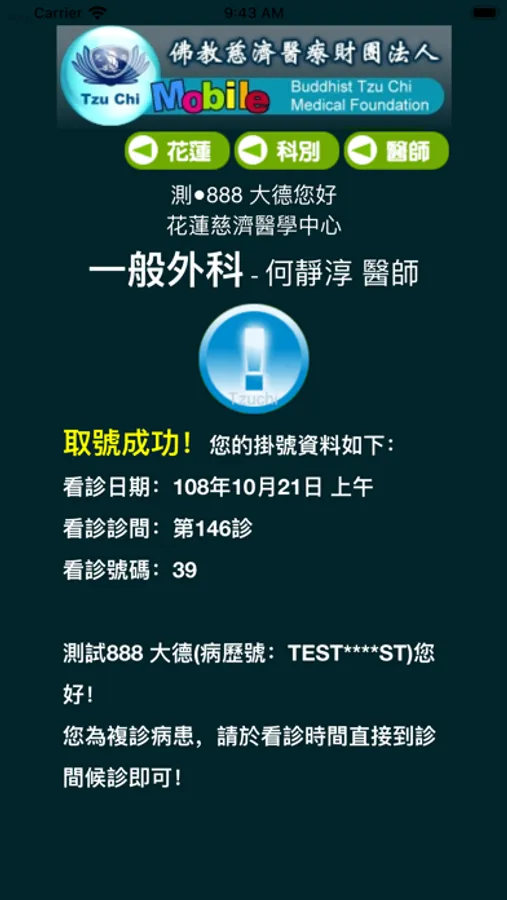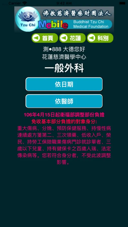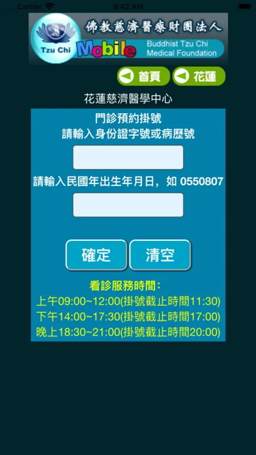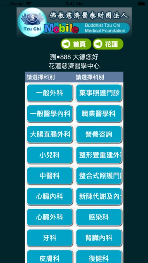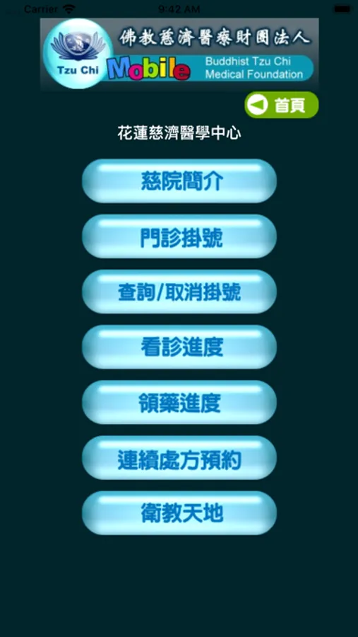 隨行動資訊科技發展,為服務廣大民眾就醫便利性 ,發展慈濟醫療志業行動掛號系統,提供佛教慈濟醫療財團法人七家院所(花蓮慈濟醫院、玉里慈濟醫院、關山慈濟醫院、大林慈濟醫院、臺北慈濟醫院、臺中慈濟醫院、斗六慈濟診所 ) 行動掛號服務,功能包含醫院簡介、門診掛號、查詢/取消掛號、看診進度及衛教天地等便利之醫療資訊服務,可隨時隨地掌握您自己及家人的健康。