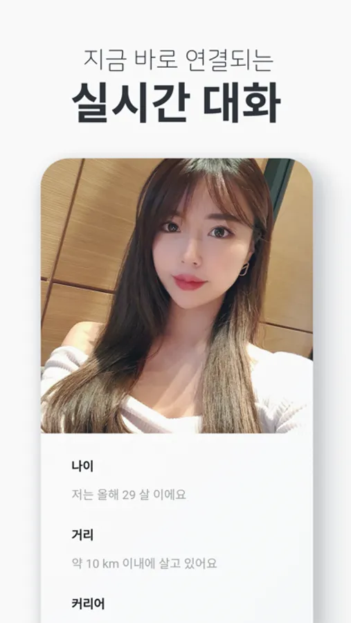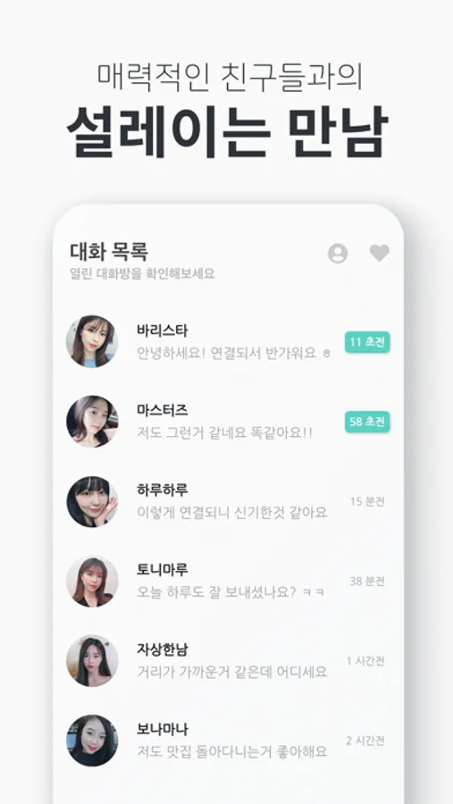 이성과의 대화도 소개팅 처럼 제공해드리고 있어요. 최근에 접속한 이성 분들을 수시로 보여드릴테니 마음에 드는 이성 분의 프로필을 확인하고 직접 대화를 걸어보세요.