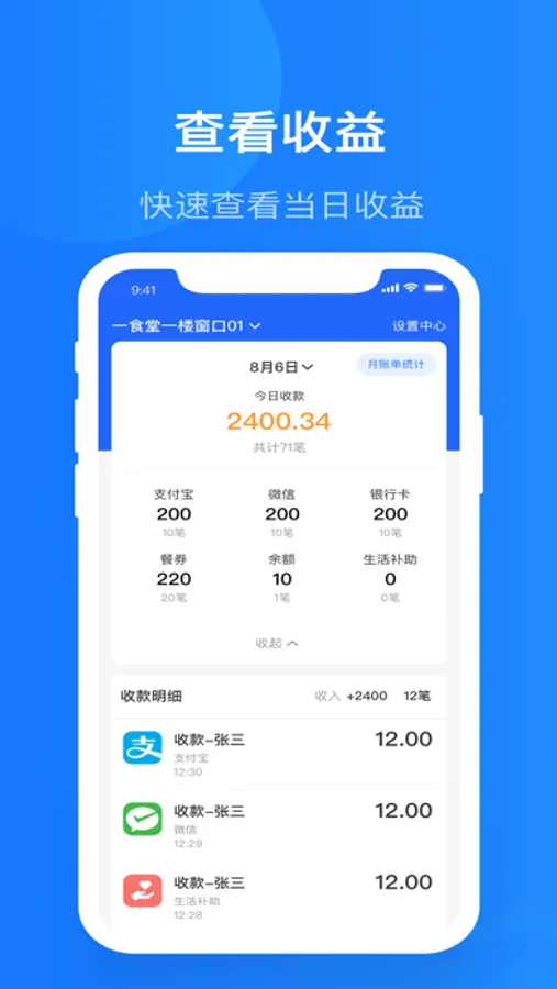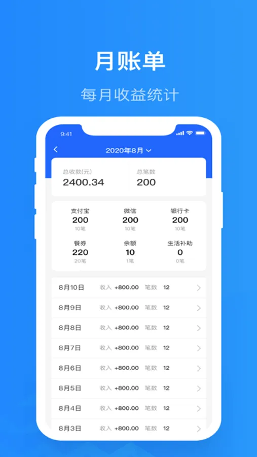 院校通商家端是专门为院校商户开发的,便于商户查询账单情况的app