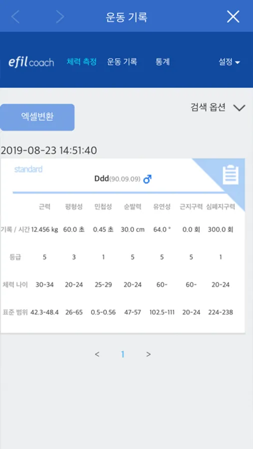 에필코치 사용자용 어플리케이션으로 에필코치와 연동하여 자신의 체력 검사, 운동 능력 등을 동기화하여 나만의 목표 설정 및 운동 계획 등을 세울 수 있습니다.