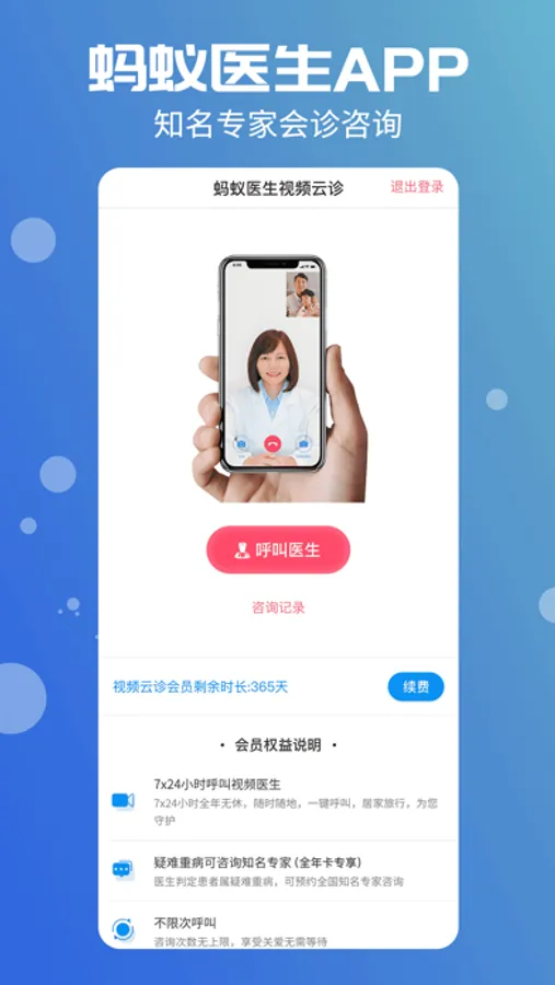 蚂蚁医生由蚂蚁医生团队研发,主要针对所有关注健康注重高品质的人群,创造一个高品质低成本的视频云诊平台。