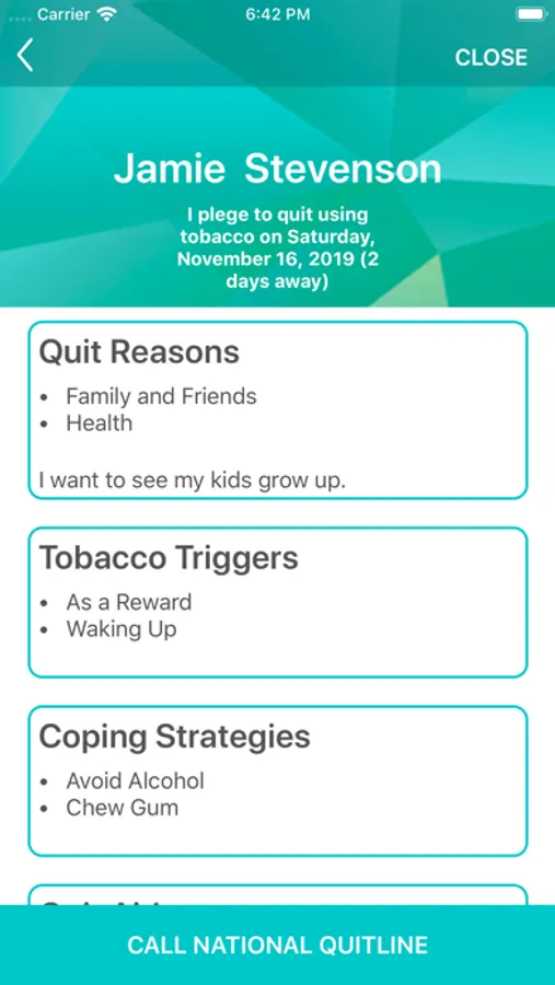 • QUIT PLAN - identify quit reasons, smoking triggers, and coping strategies